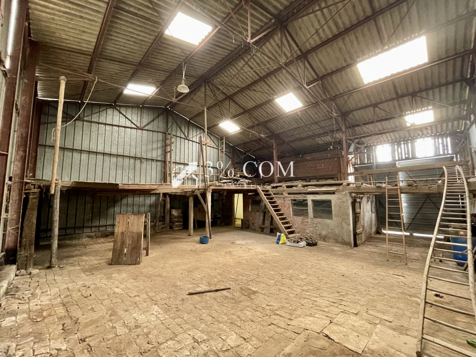 - 1 grand espace de stockage d’environ 170m² avec accès à un petit jardin.