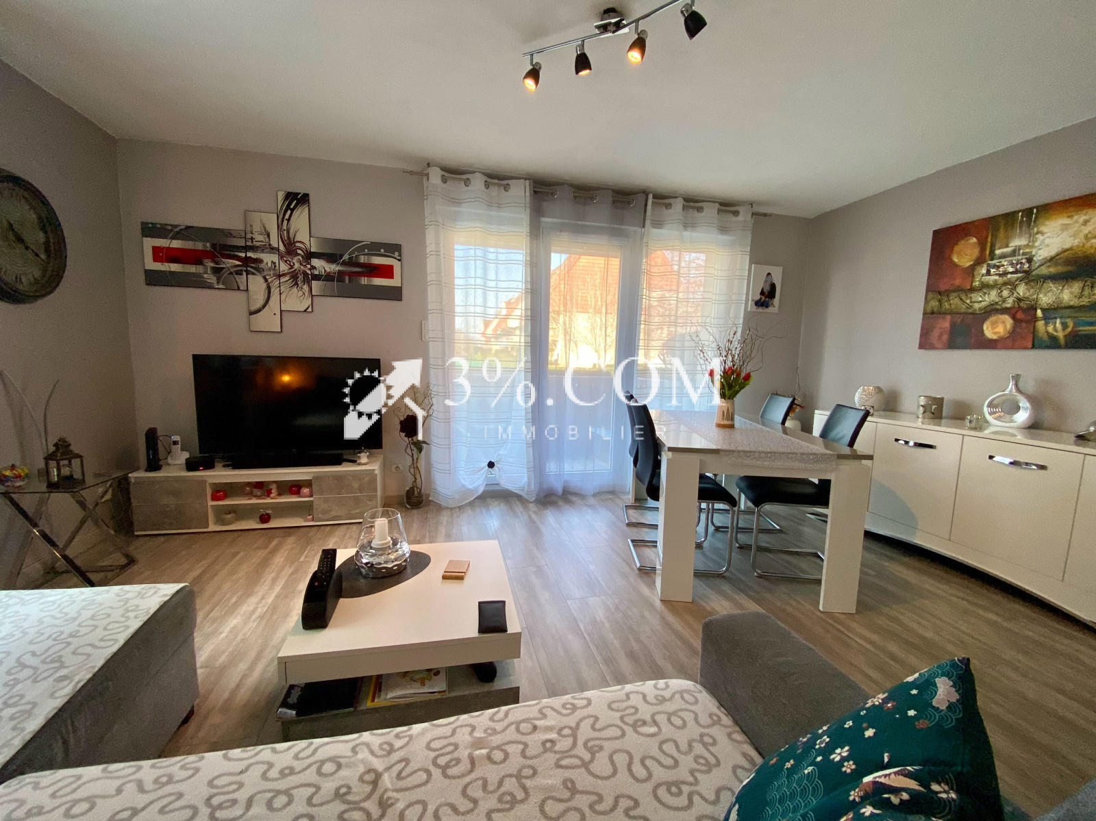 3%.COM - En EXCLUSIVITÉ - À ECKBOLSHEIM (Rue des Champs), bel appartement 3 pièces d’environ 59m² habitables situé en rez de chaussée avec 1 balcon.