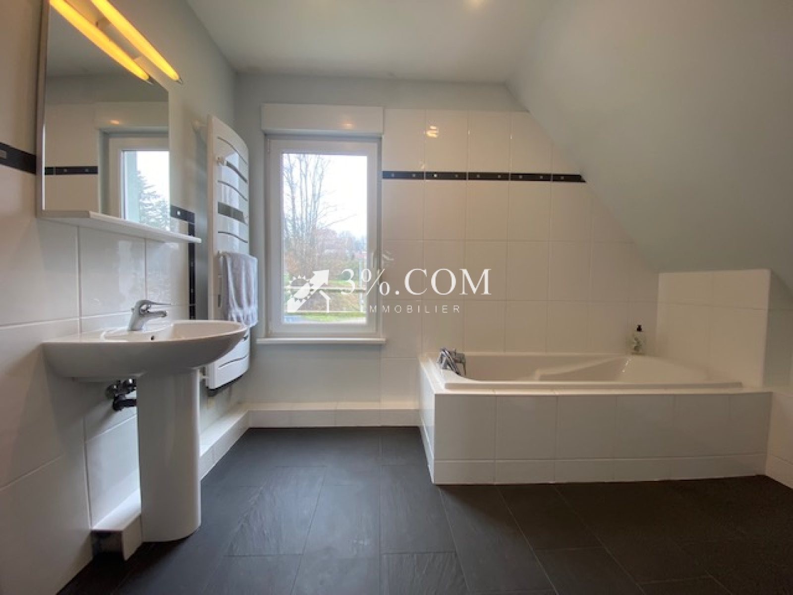 - EN EXCLUSIVITE- A DURNINGEN à 5 minutes de Truchtersheim, jolie maison de 97m² hab (110m² au sol ) sur parcelle de 5,70 ares ---Un bel espace à vivre de 49m2 avec salon ouvert sur cuisine aménagée. ---Fonctionnelle, lumineuse, située au calme. --- Vous recherchez une véritable qualité de vie dans un paisible village du Kochersberg , une maison à aménager à votre gout alors venez visiter ce bien --- Au rez-de-chaussée : --1 entrée -- 1 espace à vivre salon ouvert sur cuisine (49m²) -- 1 cuisine équipée et aménagée --1 toilette séparé --- Au 1er étage : -- 3 chambres -- 1 salle de bain avec baignoire, vasque et toilette ---Au sous-sol: espace rangement- buanderie --- Autres informations : --Construction de 2003 par le constructeur Stéphane BERGER -- Prévoir aménagement extérieur -- chauffage au sol electrique - poele à pelet central -- double vitrage PVC, isolation intérieure -- volets motorisés -- Contactez Sandrine ROTH 06 58 67 64 84. Du lundi au samedi de 9h00 à 19h00. -- Agence Immobilière ROTH IMMOBILIER Sarl, franchisé 3%.COM, RCS 803 863 638. -- Agence et vitrines à Hochfelden, siège à Gimbrett-Kochersberg. -- Réseau national à honoraires réduits: 3% TTC