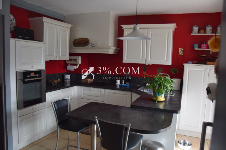 la maison est composée au rez-de-chaussée, d'un grand hall d'entrée, un salon séjour avec une cheminée, une belle cuisine équipée, une véranda de 19 m² offrant luminosité et donnant accès un superbe jardin exposé Sud.