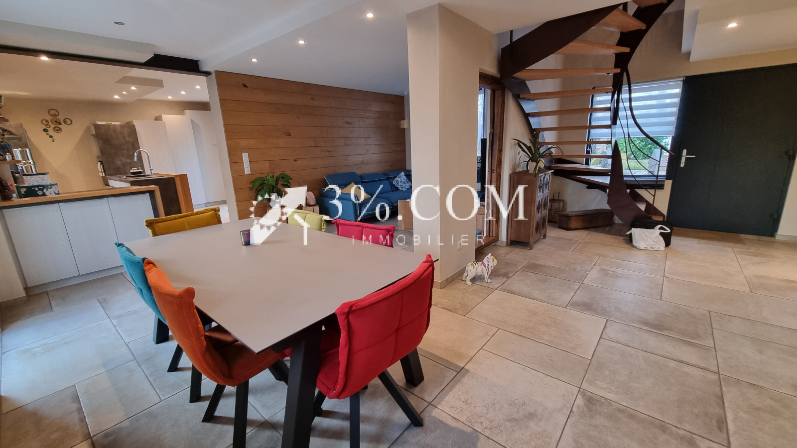 Une première pièce séjour ouvert sur le salon et cuisine d’une surface totale de plus de 60m².