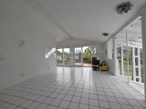 Vous trouverez quelques marches desservant en espace salle à manger et cuisine avec accès dans le jardin par de grandes portes fenêtres vitrées.
