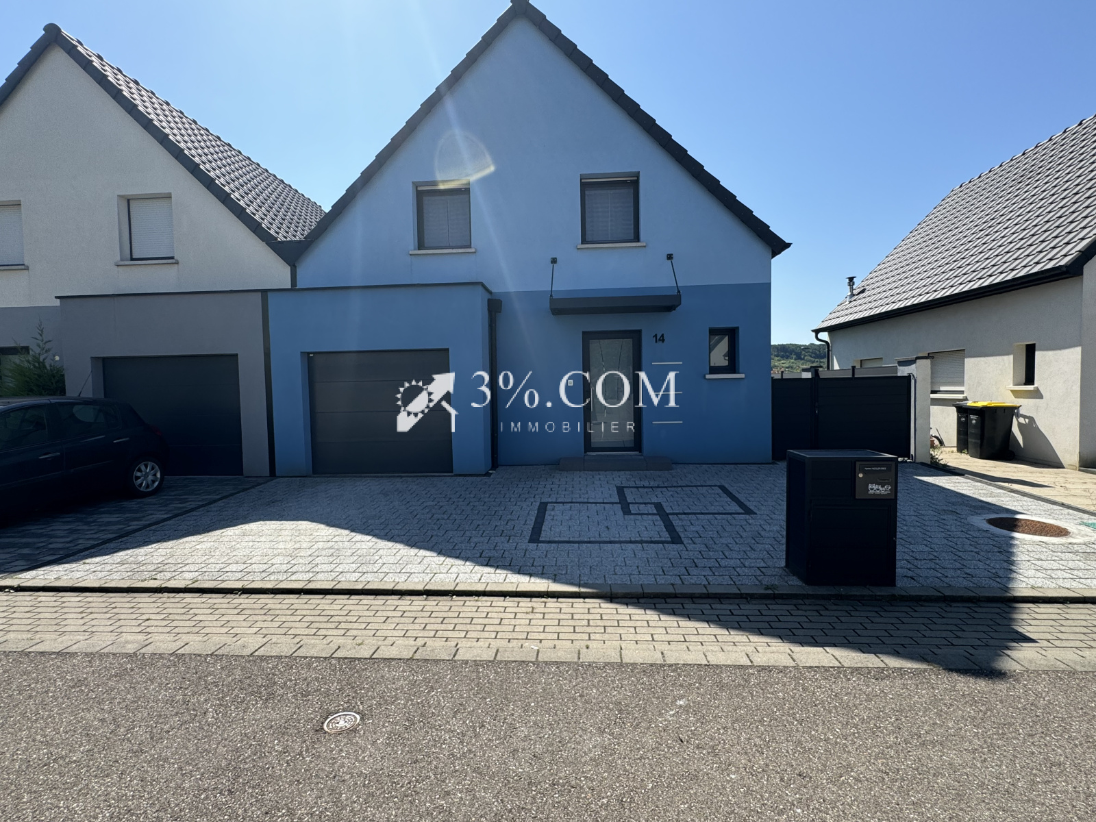 EXCLUSIVITE- A SCHWINDRATZHEIM, dans un quartier résidentiel, belle maison récente de 2017 dans un excellent état. D'une superficie de 87m2/ 103m² au sol, elle est construite sur un terrain très bien agencé de 273m2 --- Située au calme, SANS TRAVAUX. ---Un extérieur soigné complète ce bien: une terrasse de 24m² et un jardin cloturé --- Vous recherchez une maison bien entretenue avec une partie jardin, où vous pouvez poser vos valises, proche des commodités, alors n'hésitez pas et venez visiter ce bien. --- Très fonctionnelle, idéale pour famille --- Vous trouverez d'autres photos sur le site troispourcent. --- Au rez de chaussée: - espace à vivre de 41m² avec sortie de plain-pied vers la terrasse et le jardin. - La cuisine américaine est entièrement aménagée et équipée. - toilette séparé avec lave main -1er étage: - 3 chambres avec placard de rangement sur mesure - salle de bain avec douche, baignoire et toilette --Annexe: - garage avec porte motorisée (16,69m2) - cave ( 15,79m2) --- Informations diverses: -- Construction de 2017 - Stephane Berger - assurance DO -- chauffage electrique- poele à pelet - climatisation (2021) --Chauffe eau themodynamique --DPE: B - GES:A : très bonne isolation -- jardin cloturé -- places de parking extérieur --Adoucisseur -- Contactez Sandrine ROTH 06 58 67 64 84. Du lundi au samedi de 9h00 à 19h00. -- Agence Immobilière ROTH IMMOBILIER Sarl, franchisé 3%.COM, RCS 803 863 638. -- Agence et vitrines à Hochfelden, siège à Gimbrett-Kochersberg. -- Réseau national à honoraires réduits: 3% TTC.