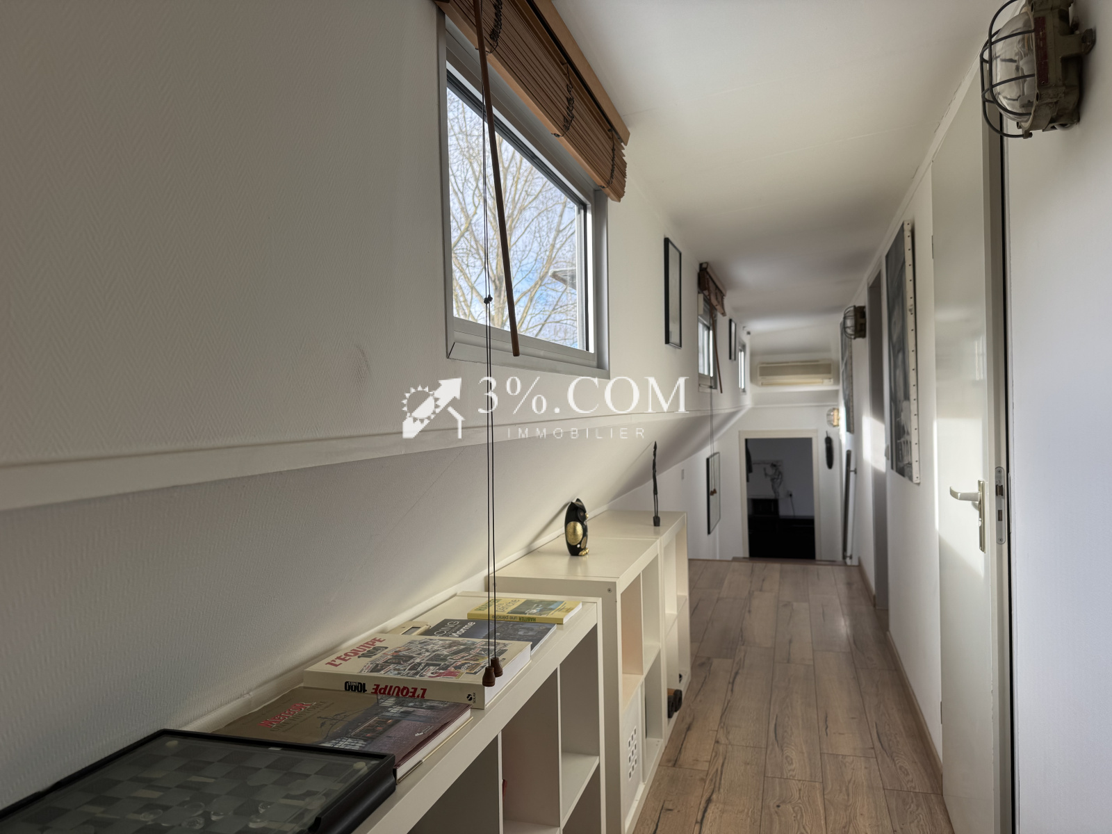 Ce bateau rénové de 39m de long - 135m² offre un logement spacieux et une capitainerie aménagée en studio idéale pour la location saisonnière.