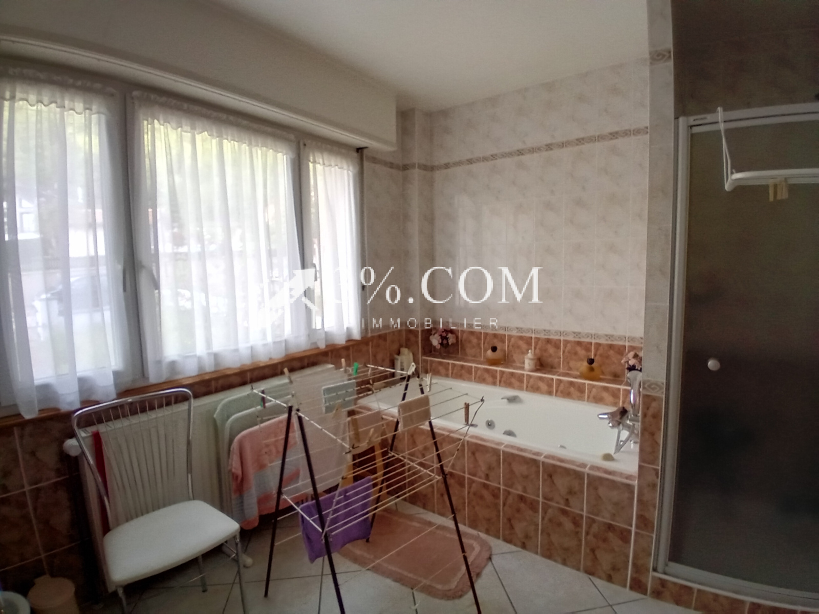 -au rez de chaussée, on trouve une pièce de vie lumineuse de plus de 30m2 avec accès terrasse, une cuisine indépendante et équipée à rafraichir de 13m2, deux chambres de 16 et 13m2, une buanderie, une salle de bains avec douche et balnéo de plus de 9m2 et un wc indépendant. Plusieurs pièces sont dotées d'un parquet en bois massif.