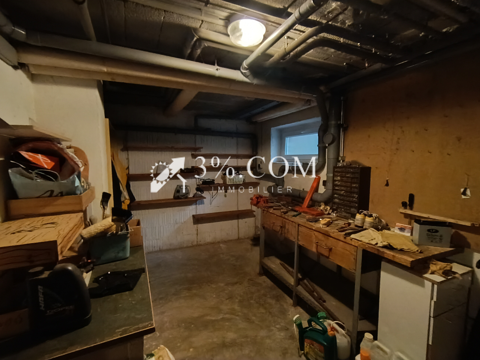 -au sous sol, on trouve deux garages de 31 et 47m2 avec portes motorisées, plusieurs espaces de rangements, un espace chaufferie et une cave de 10m2.