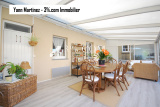 - au rez-de-chaussée : d'une grande entrée qui dessert une pièce de vie agréable et chaleureuse, d'une grande cuisine ouvrant sur la véranda de 38 m2, de deux chambres au calme, d'une salle de bain et d'une salle d'eau. La véranda devient aux beaux jours une pièce où il fait bon vivre avec son volume et sa luminosité.