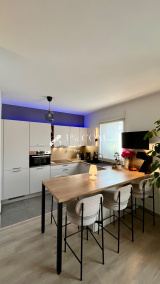 -une belle pièce de vie de 27m² donnant sur une cuisine équipée ouverte de 8,50m² avec accès à la terrasse aménagée.