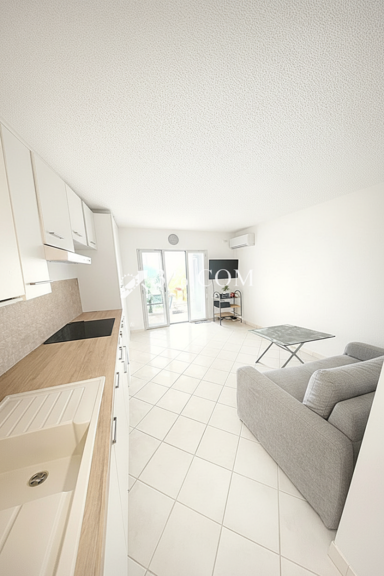 L’appartement climatisé offre une pièce de vie lumineuse avec une belle cuisine ouverte aménagée, prolongée par une belle veranda de 6 m² et un jardin privatif sans vis-à-vis orienté plein sud, véritable espace de vie supplémentaire, idéale pour savourer des moments de détente face à la Méditerranée. Une salle d’eau, un WC séparé et une place de parking privé complètent ce bien.