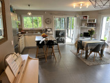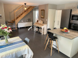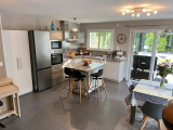 Nous noterons de belles prestations, Cuisine aménagée et équipée de marque SCHMIDT, volets roulants motorisés sur pièce de vie, plancher chauffant et production d'eau chaude sanitaire par aérothermie, sèche-serviettes dans les salles de bains et d'eau, Porte de Garage sectionnelle.