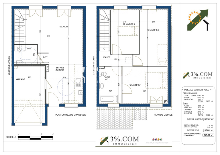 Stéphane GODARD de 3%.COM Immobilier, vous propose cette Maison à Étage d'une surface utile de 95,80 m² avec 3 chambres,