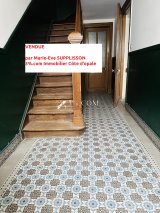 Entrée avec jolis carreaux de ciment au sol, 4 chambres et un bureau, une salle de bain et une salle d'eau, grand séjour avec parquets anciens ouvert sur le jardin, cuisine accès terrasse, deux caves, garage.