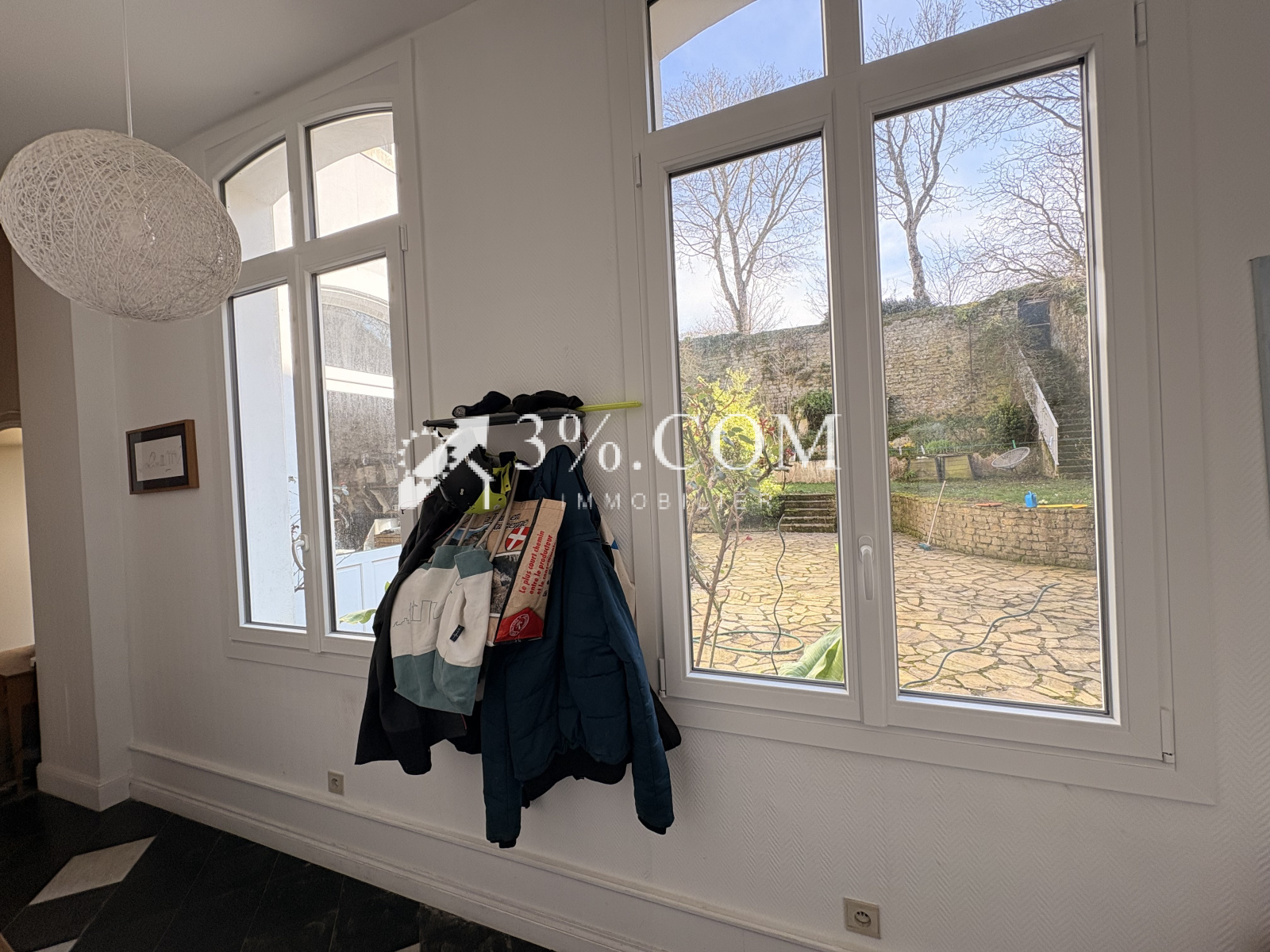 Derrière ce grand porche, au calme, sans vis à vis, vous découvrirez: une belle bâtisse avec une salle de réception magnifique, de belles hauteurs sous-plafonds, des moulures, deux cheminées-inserts magnifiques, de beaux parquets d'origine, une cour intérieure pour se stationner, un jardin bien exposé...