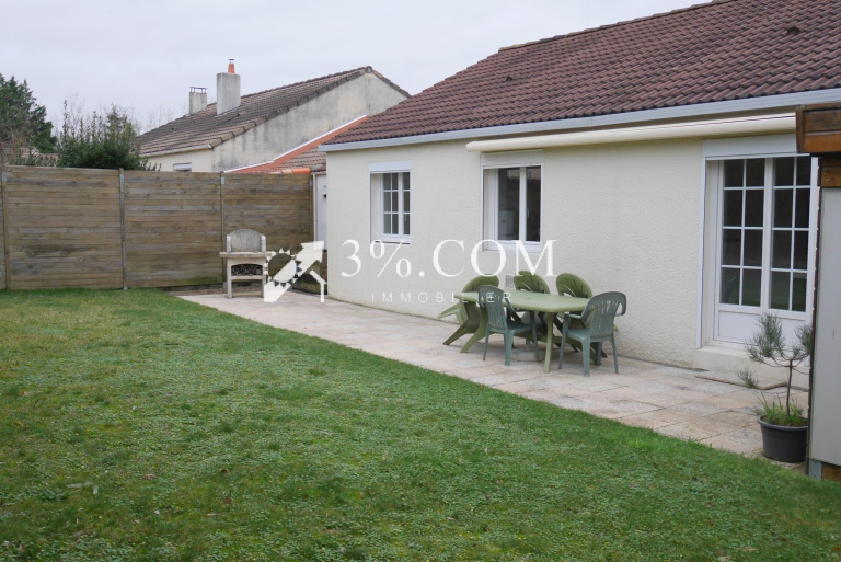 Stéphane GODARD de 3%.COM Immobilier, vous propose cette Maison de Plain-pied d'une surface habitable d'environ 84 m² avec 3 chambres, un Garage de 15 m² et un Préau fermé transformé en Garage de 37 m², le tout sur un terrain arboré et clos d'environ 600 m² sans vis à vis.
