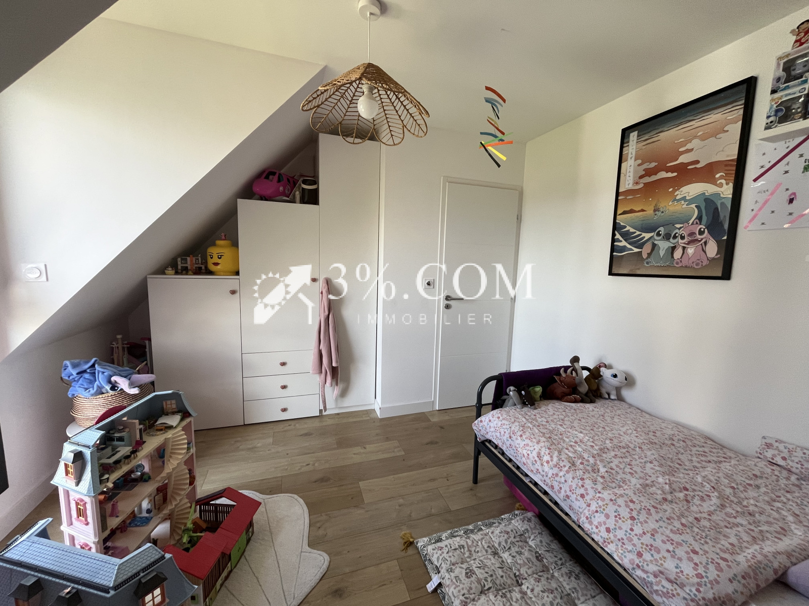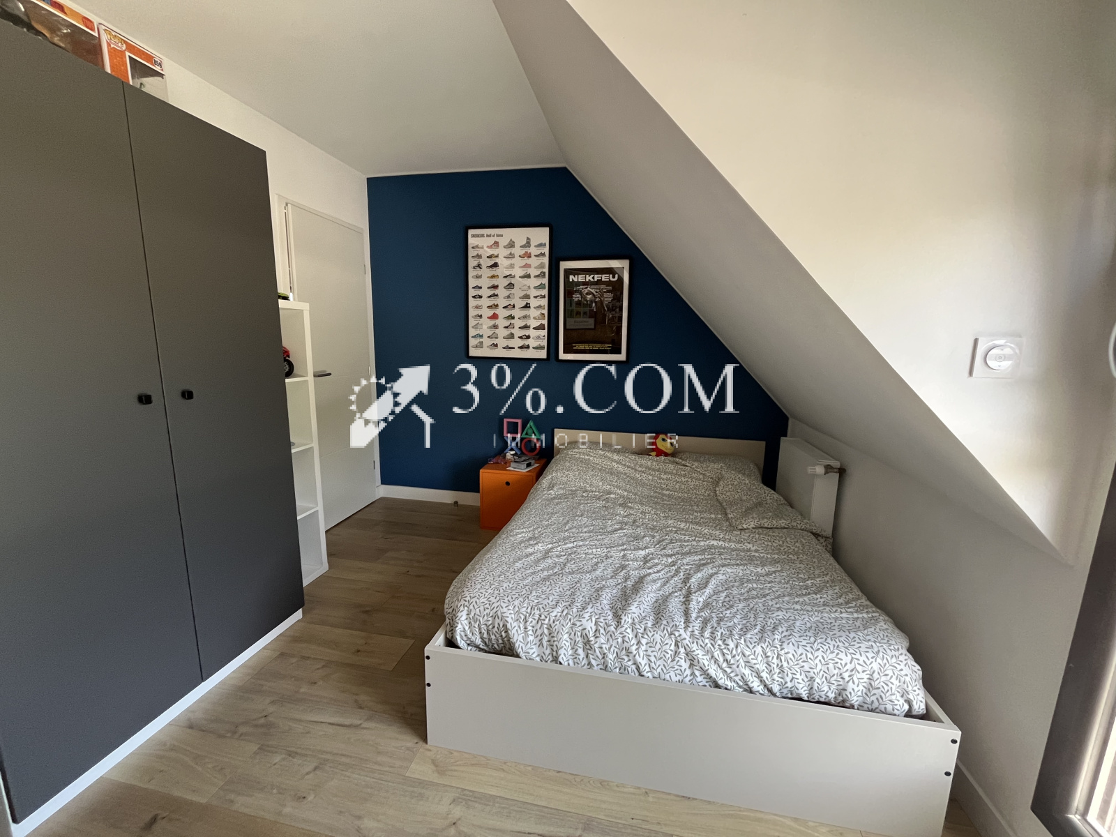 Trois chambres, un wc suspendu et une salle de bain.