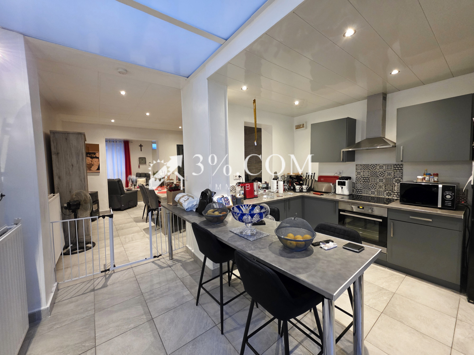 Un salon / salle à manger de 27,5m2 avec cuisine ouverte de 14m2