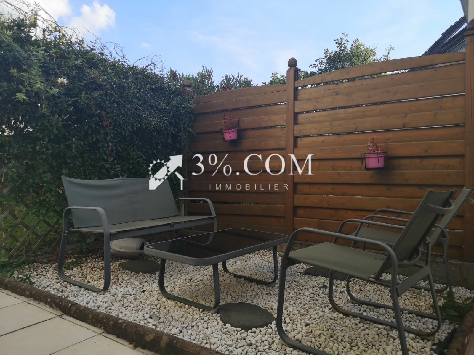 De plus, vous profiterez du jardin clos jouissant d'une belle exposition, deux terrasses dont une avec pergola pour les déjeuners au frais et un petit salon d'été.
