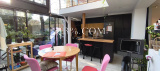 L’intérieur a été entièrement repensé et rénové depuis 2017. Le cœur de la maison est une impressionnante pièce de vie à double hauteur, baignée de lumière naturelle grâce à une grande véranda vitrée ouverte sur le jardin - une ambiance rare, proche de l’esprit loft.