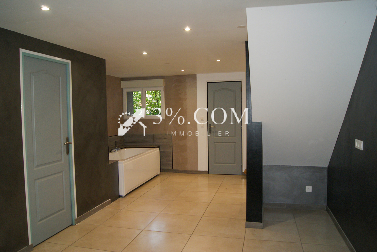 deux chambres, une cuisine équipée, un salon, une salle d'eau, un grenier, une cave , une entrée avec placard intégré, un sous sol aménagé avec une baignoire bal néo et une terrasse accessible par le sous sol