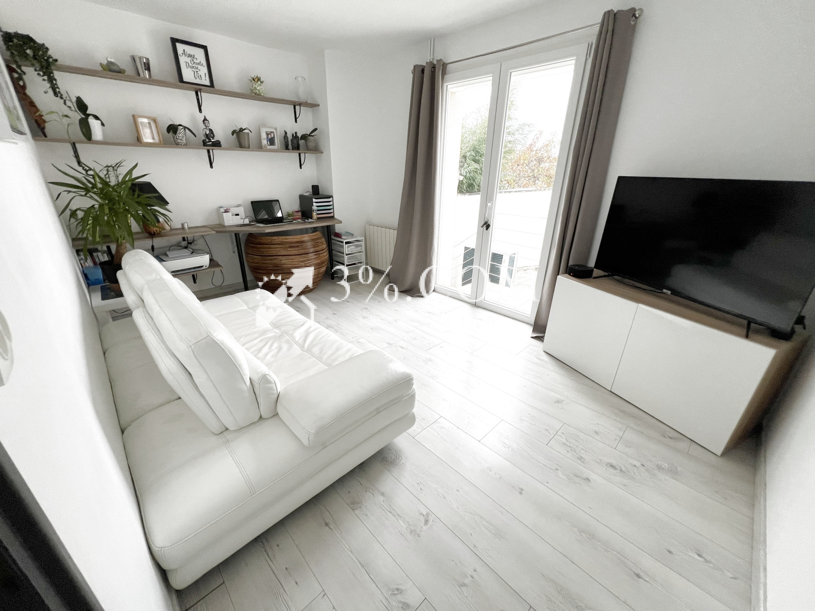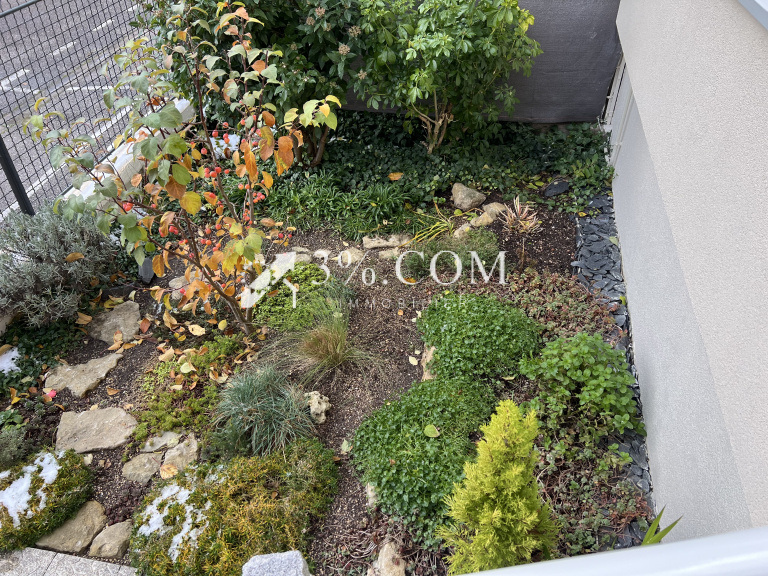 - Salon lumineux de 18 m² avec accès direct à une terrasse de 30 m² et un jardin de 150 m².