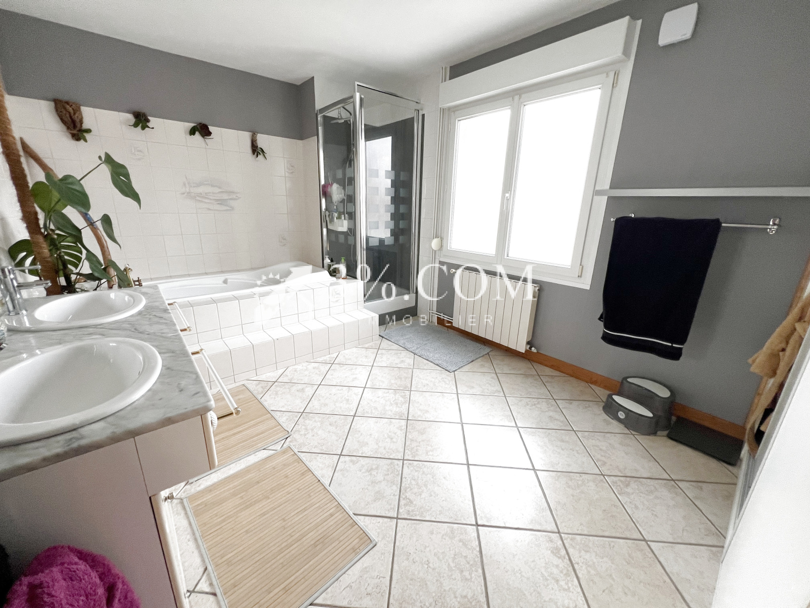 -Salle de bain spacieuse de 13 m² avec douche et baignoire.