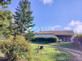 La parcelle arborée de 6000 m2 attenante est exposée à l’Ouest. Elle possède une large partie supérieure côté sud avec un emplacement piscine à réhabiliter et de belles terrasses arborées autour de la maison, ainsi qu’un vaste espace potager en contrebas de l’habitation, de deux chemins d’accès et d’un garage fermé de 24m2.