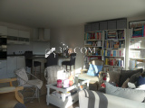 Il est composé d'une entrée avec placard, une cuisine entièrement équipée et ouverte sur la lumineuse pièce de vie de plus de 25m² qui dispose d'un accés sur le balcon.