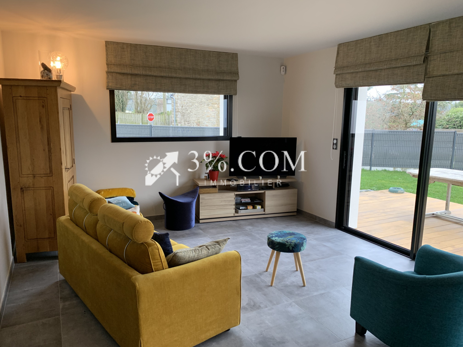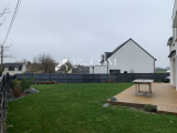 Terrasse en bois et joli jardin arboré et clos