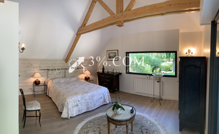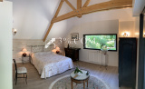 Un espace nuit de plain-pied avec une belle hauteur sous plafond complète l’ensemble avec une suite parentale (dressing, salle d’eau, wc), pour une surface de 30m² qui dispose d’une superbe vue sur le jardin et son propre accès sur la terrasse.
