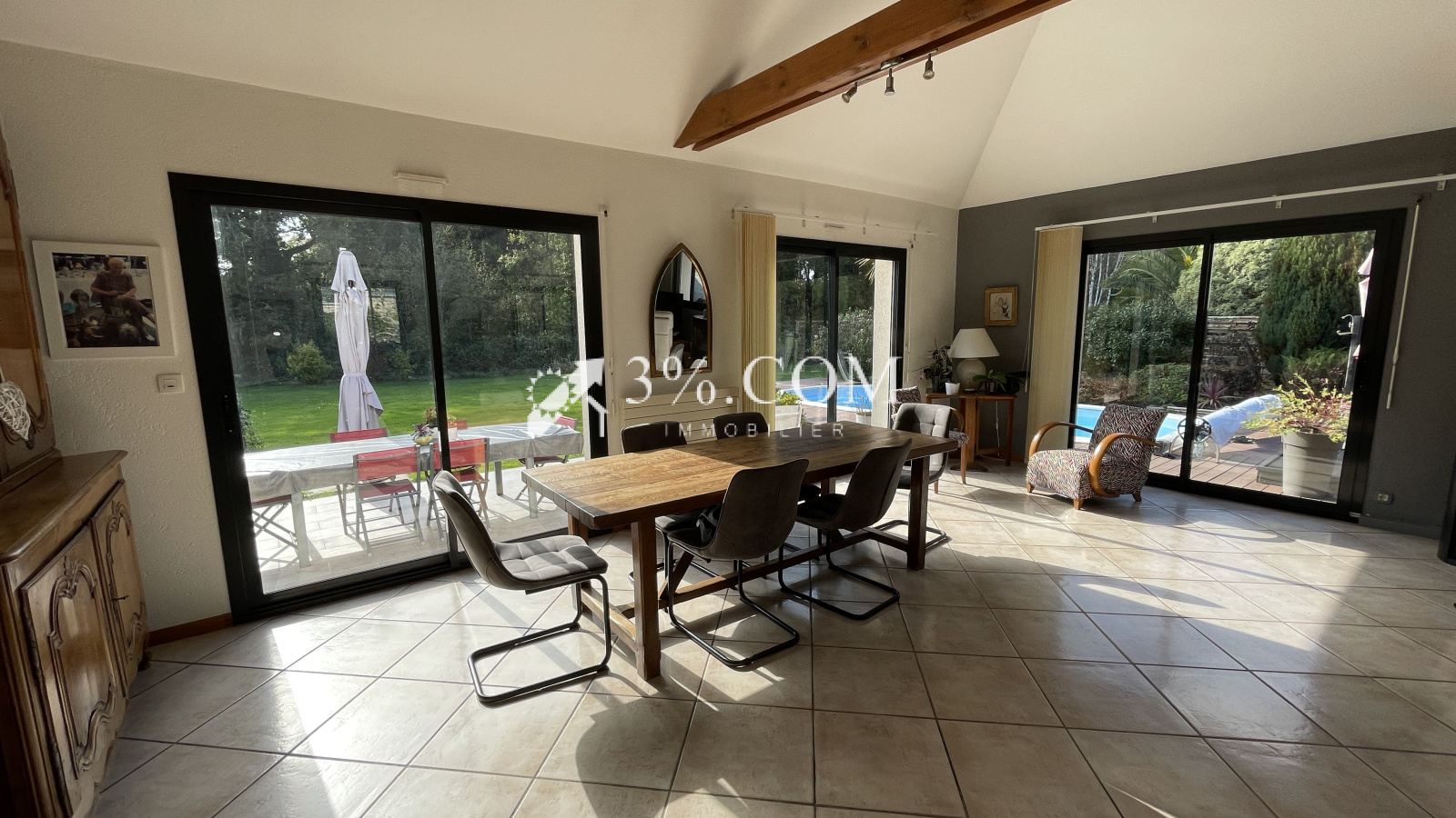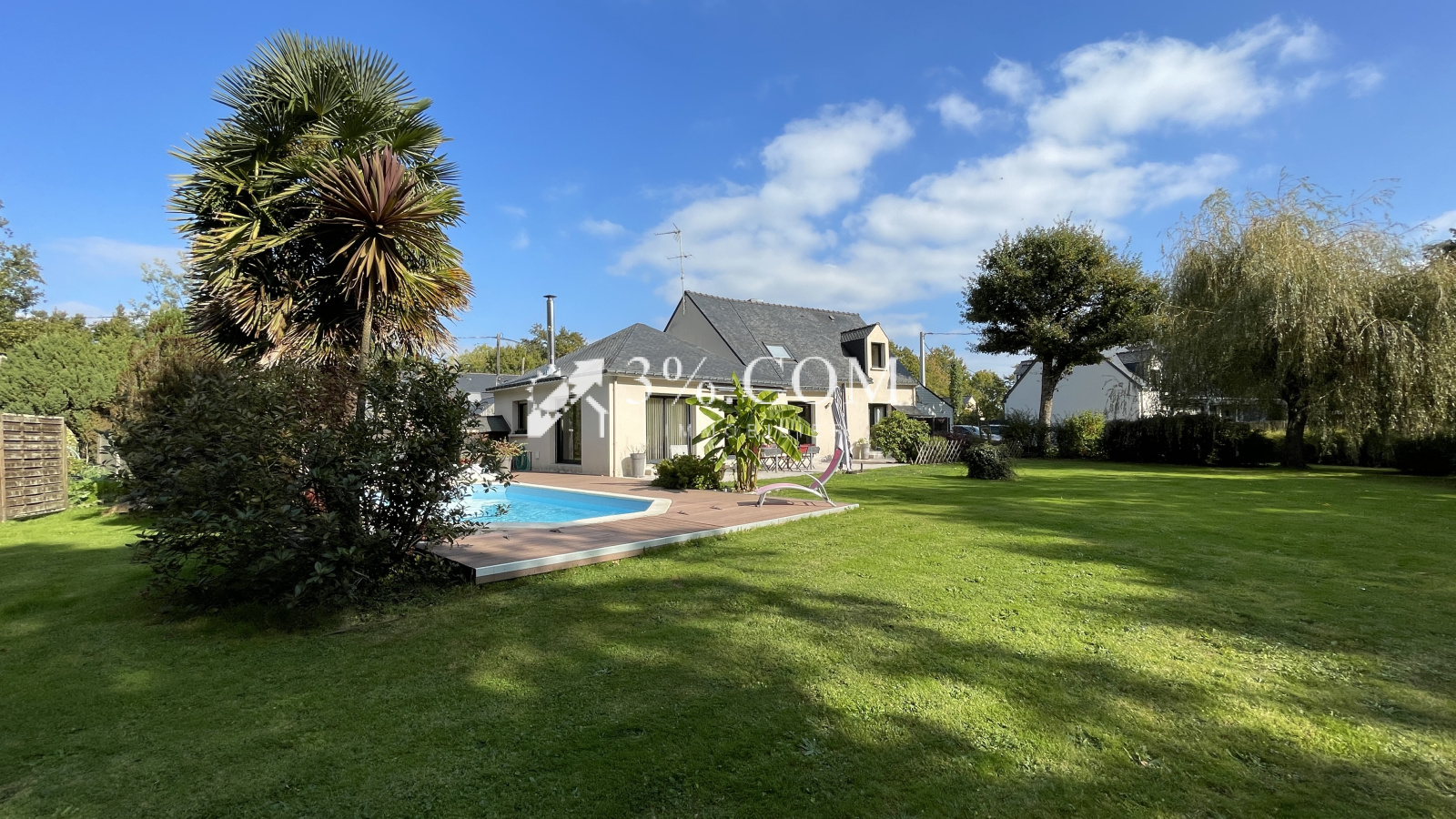 EXCLUSIVITÉ – 3%.Com Immobilier – Julie & Romain BRIFFAUT Baden – Secteur recherché Située dans un charmant hameau entouré de verdure, à seulement 2 km des plages, des sentiers côtiers et des commerces, cette maison d’architecte lumineuse bénéficie d’un environnement calme et privilégié. Description du bien : Dès l’entrée, vous découvrirez un espace avec rangements donnant sur une spacieuse pièce de vie de 50 m², baignée de lumière, offrant une belle hauteur sous plafond et équipée d’un poêle à bois. La cuisine aménagée et équipée, ouverte sur la terrasse, dispose d’un cellier et d’une buanderie attenante. La partie nuit au rez-de-chaussée comprend : Une grande chambre principale, Une seconde chambre avec rangements, Une salle de bains. À l’étage : Deux grandes chambres avec rangements, Une mezzanine pouvant servir d’espace lecture ou bureau, Une salle de bains avec WC. Extérieur : Sans aucun vis-à-vis, le jardin paysager offre une vue dégagée sur un bois, une grande terrasse, une piscine, un atelier, un grenier et un garage. Le tout sur un terrain de 1 770 m², entièrement clos avec portail électrique, offrant plusieurs stationnements (voitures, bateau, camping-car) et des possibilités d’agrandissement. Équipements récents : Pompe à chaleur récente VMC neuve Double vitrage Faibles consommations énergétiques Prix de vente de 798 000 € frais d'agence inclus de 2,97% à la charge de l'acquéreur Prix de vente hors frais d'agence de 775 000 €. Contactez Romain BRIFFAUT au 0624912471-RSAC de Vannes 820 039 162- Agent Commercial en immobilier.