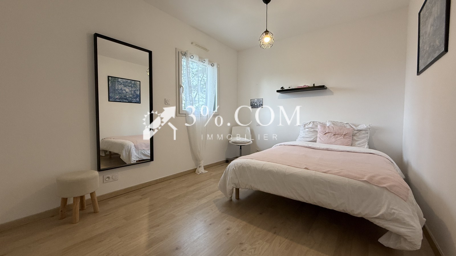 Le rez-de-chaussée propose un espace nuit confortable comprenant une chambre avec dressing ainsi qu’une salle d’eau.