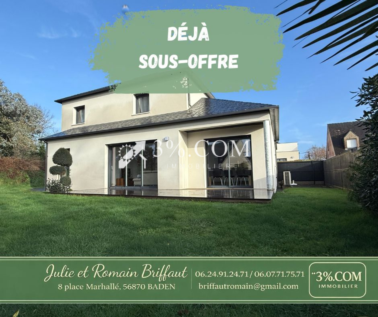 Exclusivité 3%.Com Immobilier – Julie & Romain BRIFFAUT – Baden