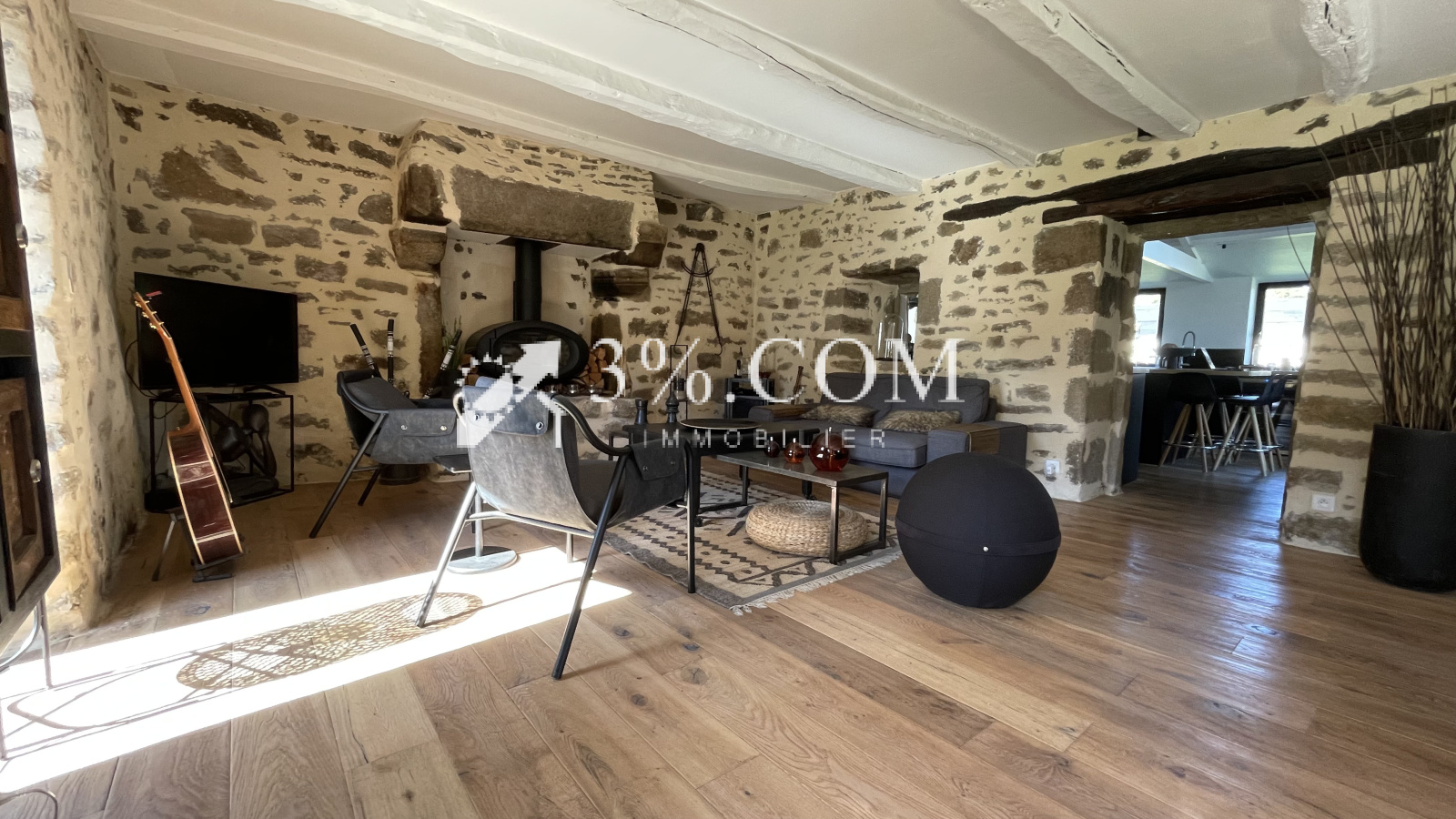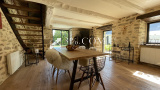 Elle se compose d'une entrée, une superbe pièce de vie de plus de 40m², poutres pierres apparentes, cheminées, parquet, et vue sur la piscine l’ensemble est juste parfait !
