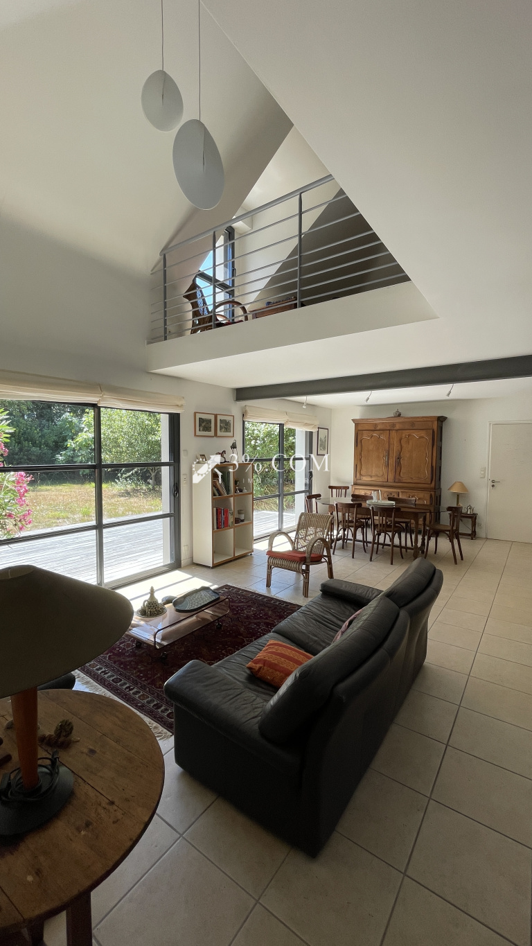 Dans un environnement préservé, à l’abri des regards et en fond d’impasse, cette propriété contemporaine de 2004 allie harmonieusement volumes, lumière et sérénité. À seulement quelques minutes à pied du charmant bourg de Larmor-Baden et des plages, elle offre un cadre de vie rare, où confort rime avec nature et discrétion.