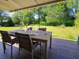 Une grande entrée avec du rangement, un salon avec un poêle à bois, un séjour, une superbe cuisine aménagée équipée, le tout donne sur une terrasse avec une belle orientation sud ouest. A la suite de la cuisine, une confortable buanderie/arrière cuisine, deux belles chambres, une salle de bains, wc et un accès au garage et son grenier.