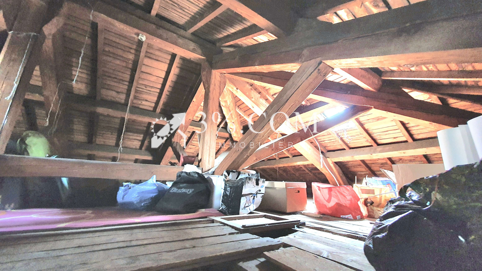 Une belle charpente traditionnelle en très bon état sur un grand grenier offrant beaucoup de rangement.