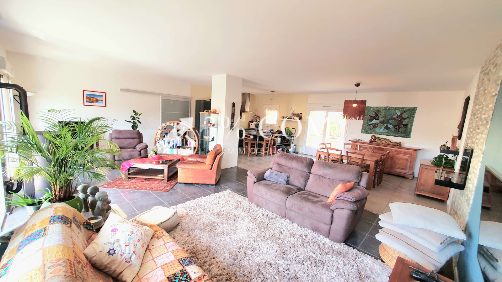 Rénovation récente avec une très grande et belle pièce de vie double vitrage volets electriques avec une cuisine toute équipée, donnant sur plusieurs belles terrasses pour y manger ou se reposer . Très aérée et lumineuse !