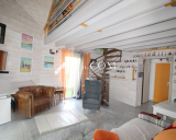 Sa configuration atypique lui confère différents espaces ou chacun peut évoluer à l'abri des regards; une entrée avec placard, un salon avec mezzanine vu mer, un dégagement avec placard, salle de bain & douche, WC, vaste séjour, cuisine A&E donnant sur une terrasse couverte par une baie à galandage. L'étage propose 4 chambres, une salle d'eau.