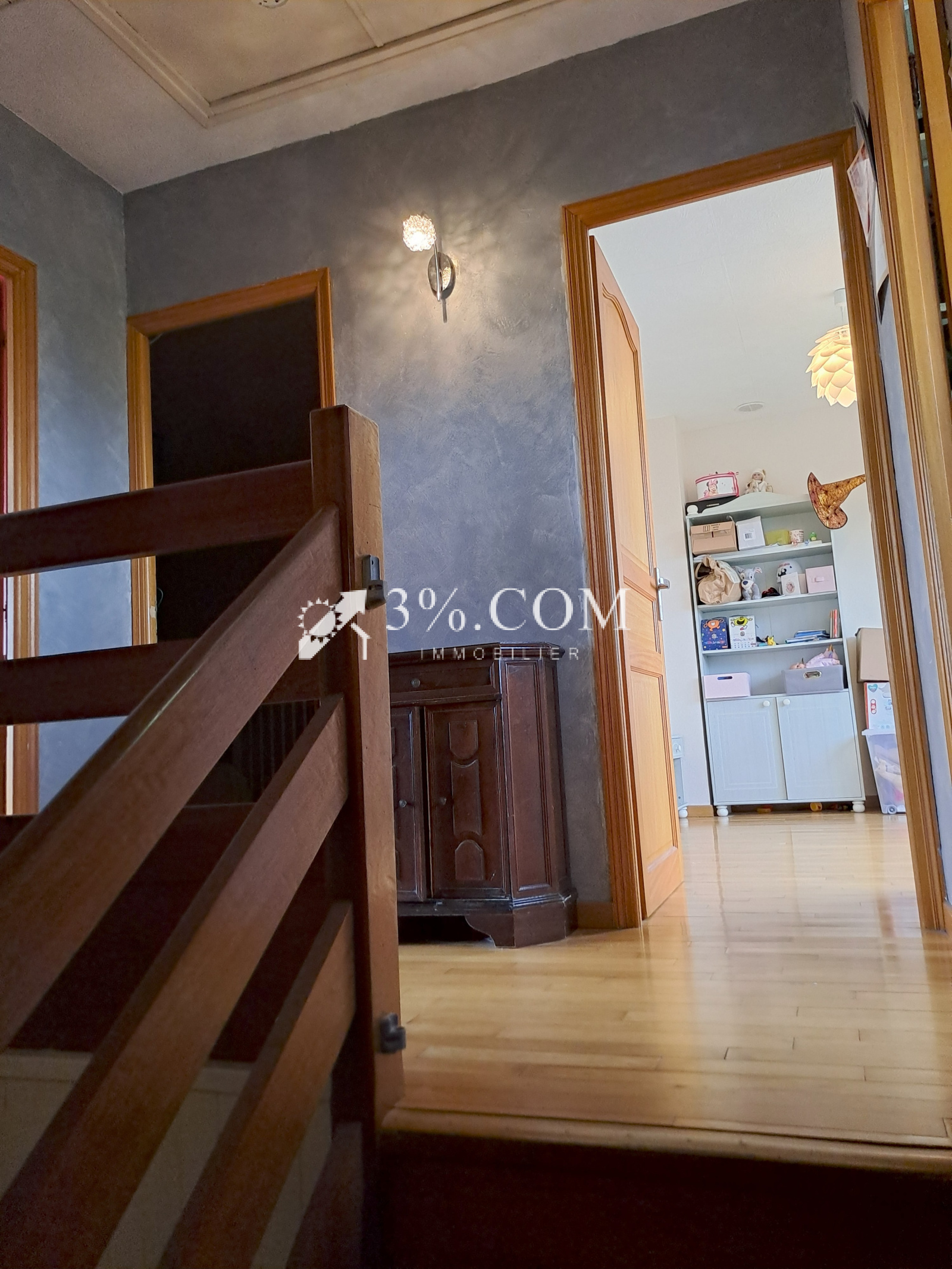 A l'étage (plancher sur dalle béton), le palier dessert 3 belles chambres ainsi qu'une buanderie pouvant être transformée en salle de bain.