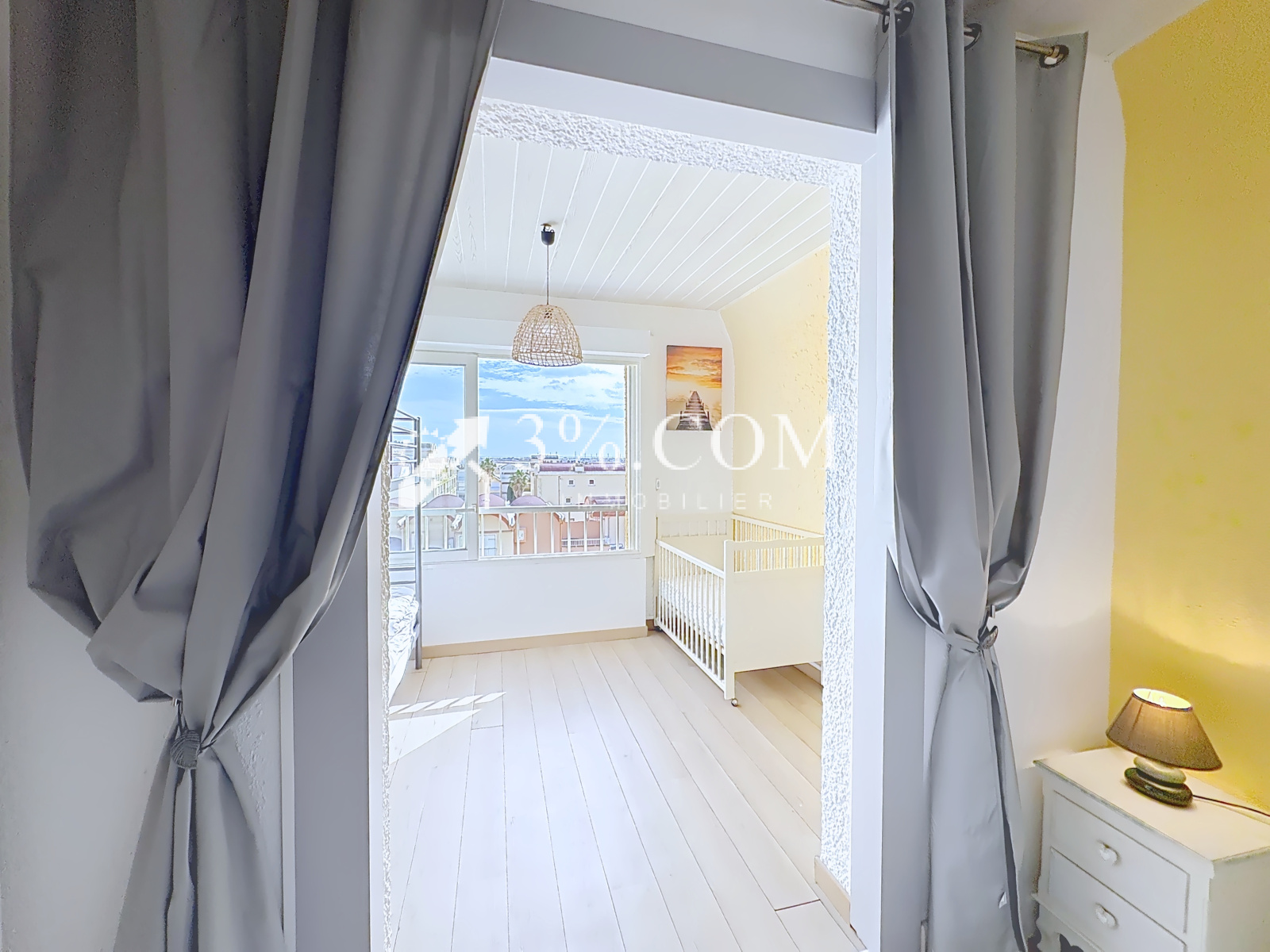 Chambre 2 de 8,81 m² ouvrant sur une 3ème chambre de 7,94 m² avec vue sur le port pouvant être également aménagée en coin bureau.