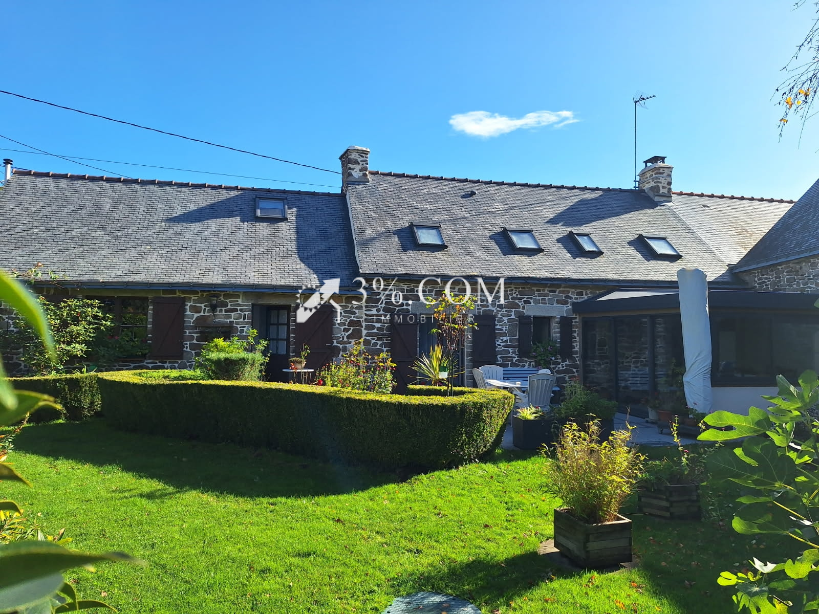 Gwen Tuck – 3%.COM Immobilier vous propose, en exclusivité sur la commune de Saint-Guyomard, cette charmante maison en pierres avec un joli jardin paysager. Mitoyenne d’un côté, elle se situe dans un hameau calme et agréable.