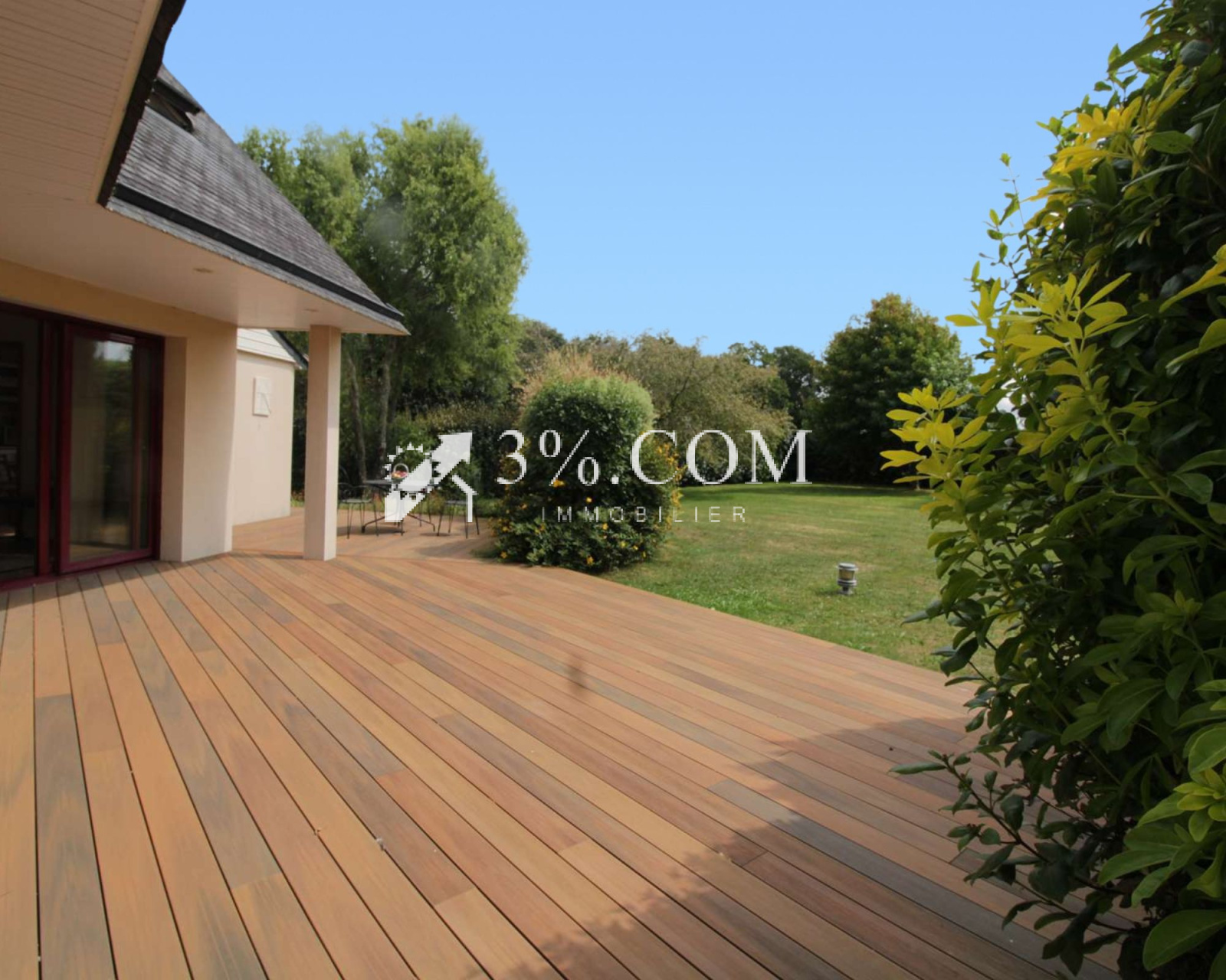 3%.COM RIA IMMOBILIER vous propose cette contemporaine, construite avec des matériaux nobles, aux finitions soignées de 150 m² env, alliant confort, style et durabilité sur une parcelle arborée entièrement constructible & clôturée (2700m² env.) à deux pas du centre de PLUVIGNER