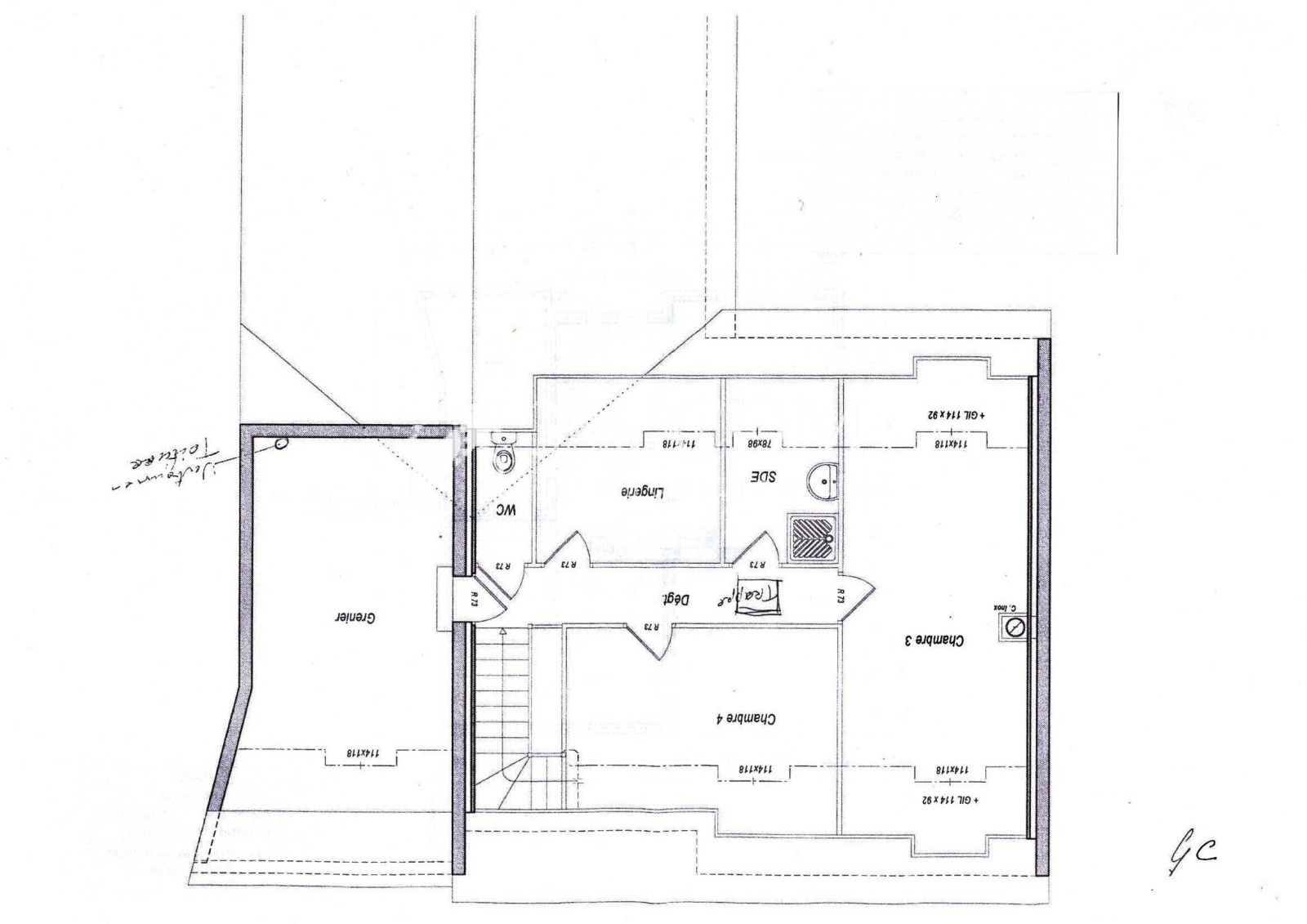 A l'étage: trois chambres, une salle d'eau, WC ainsi qu'un grenier aménagé en dortoir ou autre fonction