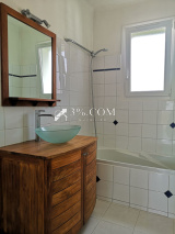 Il se compose d'une grande cuisine A/E, un séjour avec cheminée (décorative), une petite chaufferie, une buanderie, 3 chambres aménagées de placards, une salle de bain, des toilettes avec lave-mains et 2 petits placards.