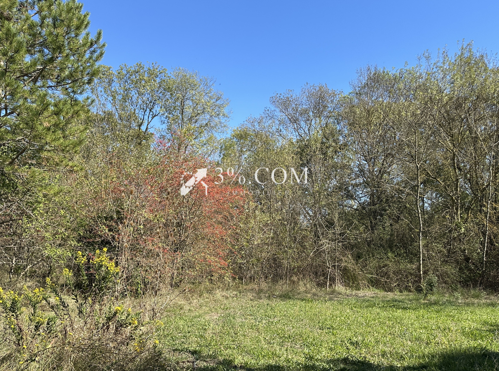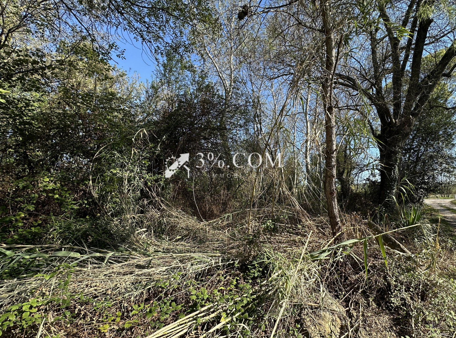 Ce terrain arboré en partie de 4800 m² n’est pas constructible, ni clôturé. Accès par un court chemin de terre.