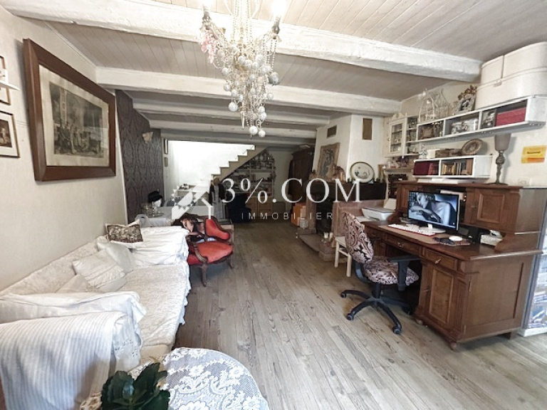 Ce bien possède au RDC : une cuisine équipée. Un salon séjour d'environ 25 m². Un espace buanderie. Un wc-sanibroyeur.et une grande pièce d'environ 25m² pouvant servir de salle à manger ou d'une chambre parentale additionnelle au RDC.