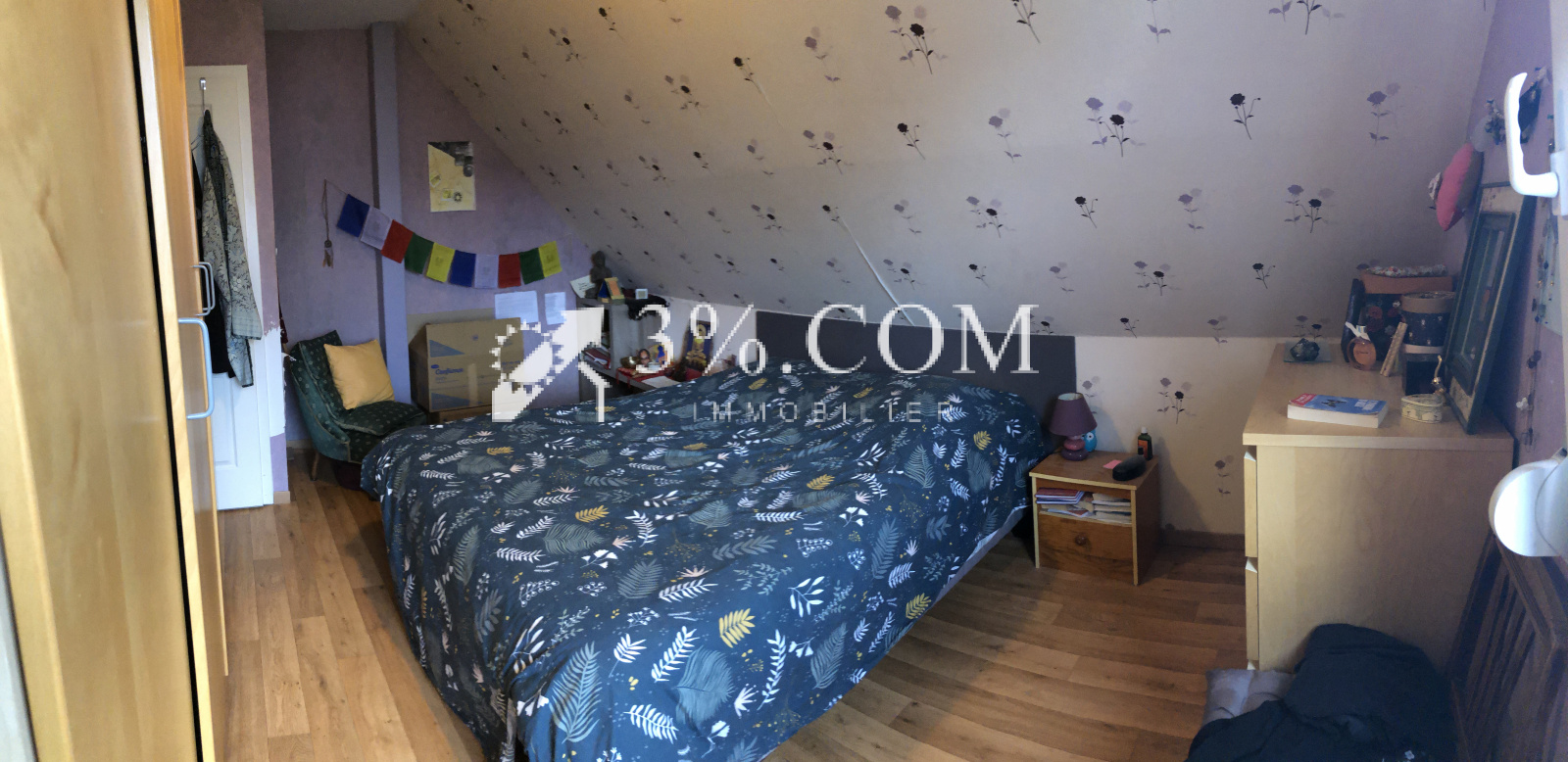 L'étage 3 chambres de 13m² chacune environ et une salle de bain avec double vasque de 7,71m² WC.