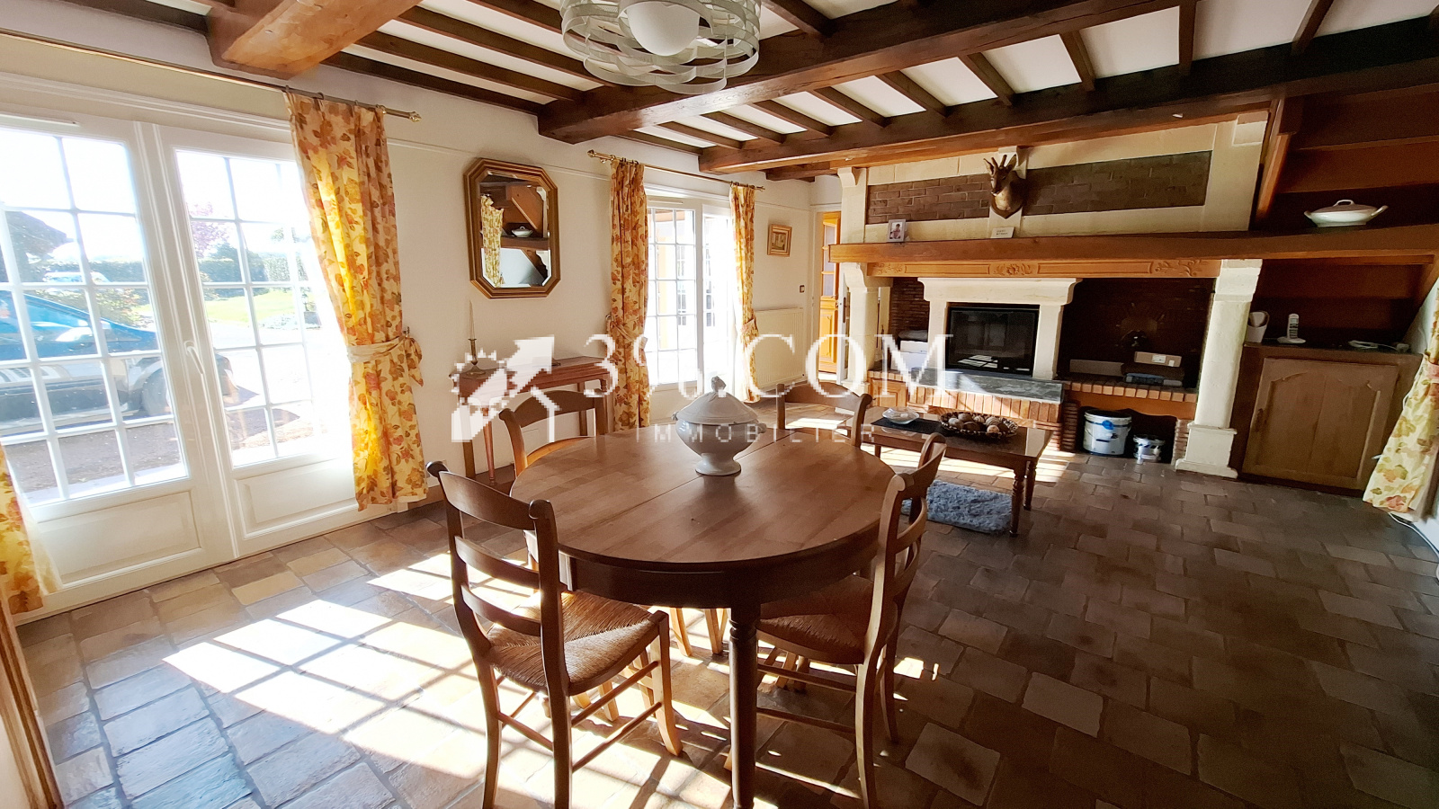***Rdc : entrée, Cuisine avec coin repas, aménagée et équipée, grand séjour lumineux avec cheminée et insert bois - 25 m² . (Le coin salon 10 m² - a été cloisoné et aménagé en CH , peut redevenir un salon sans gros travaux) - salle d'eau avec wc, buanderie/laverie, WC indépendant et petite pièce menant au jardin.