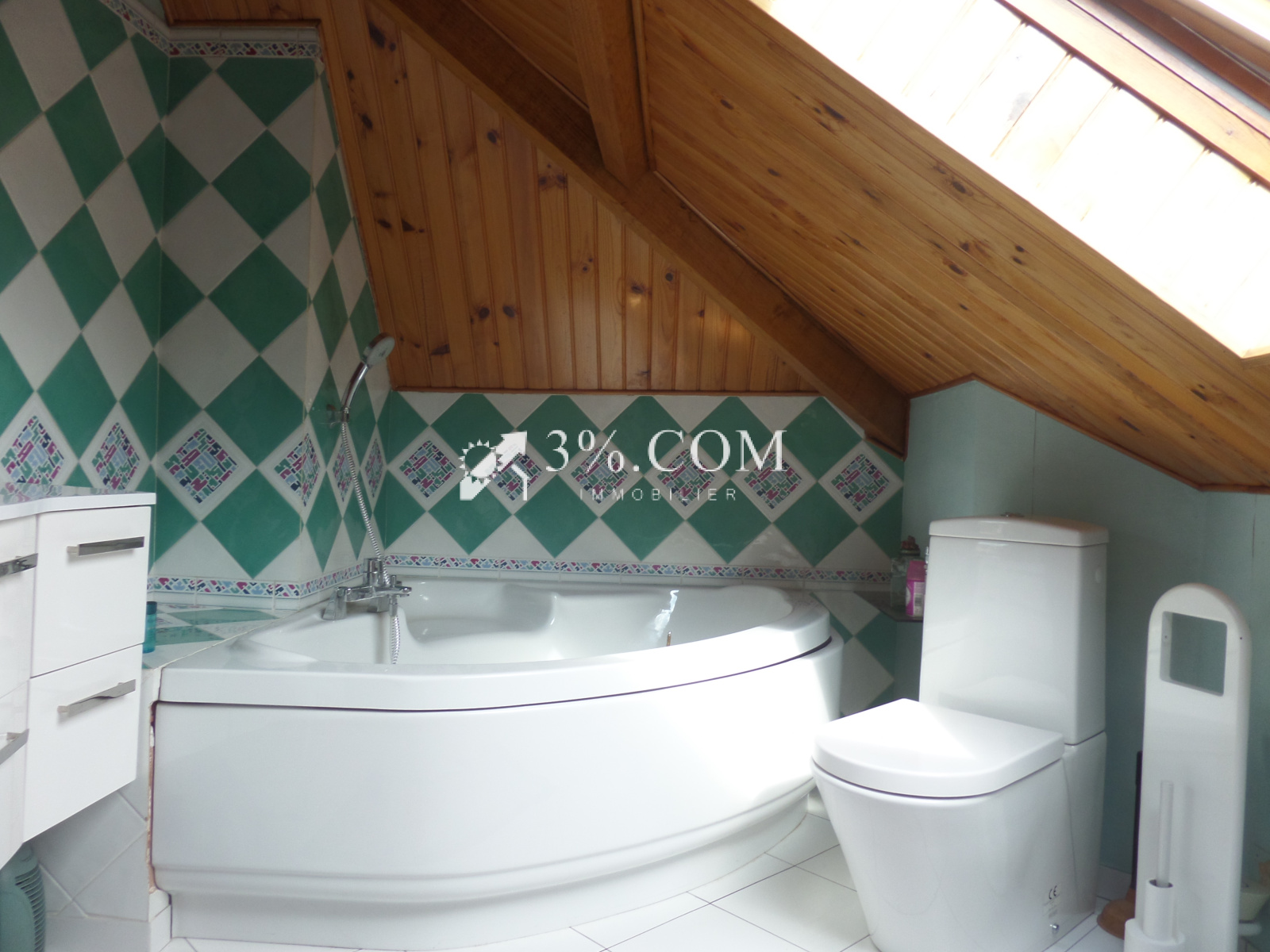 3%.COM. Dans la commune de CROSNE. Proche Centre-Ville, belle maison de 98 m² avec studio et un terrain de 530 m², composée d’un séjour, un salon, cuisine équipée, 3 chambres, 1 salle de bains avec wc et 1 salle d’eau avec wc