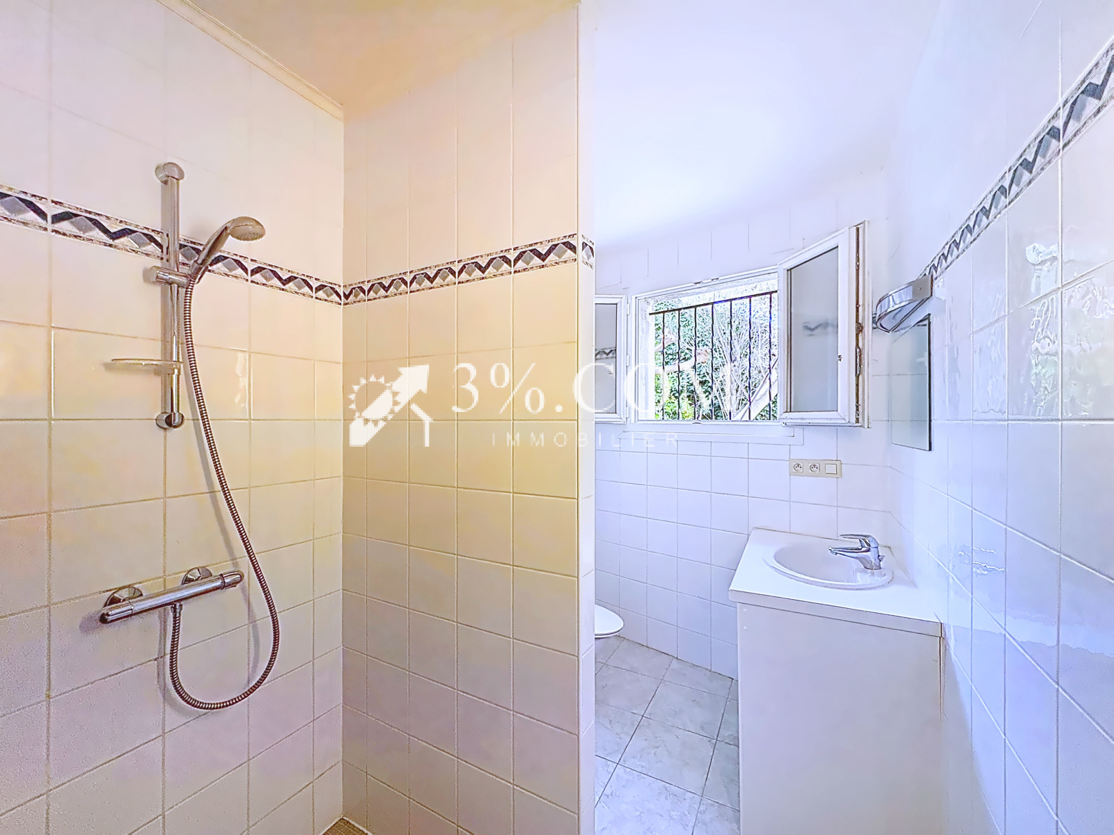 Une seconde salle d’eau de près de 6 m² avec douche, vasque et sèche-serviettes,